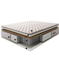 Felépítés: 5 zónás táskarugós rendszer, kókuszfilc réteg, steppelt légáteresztő huzat